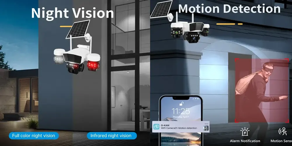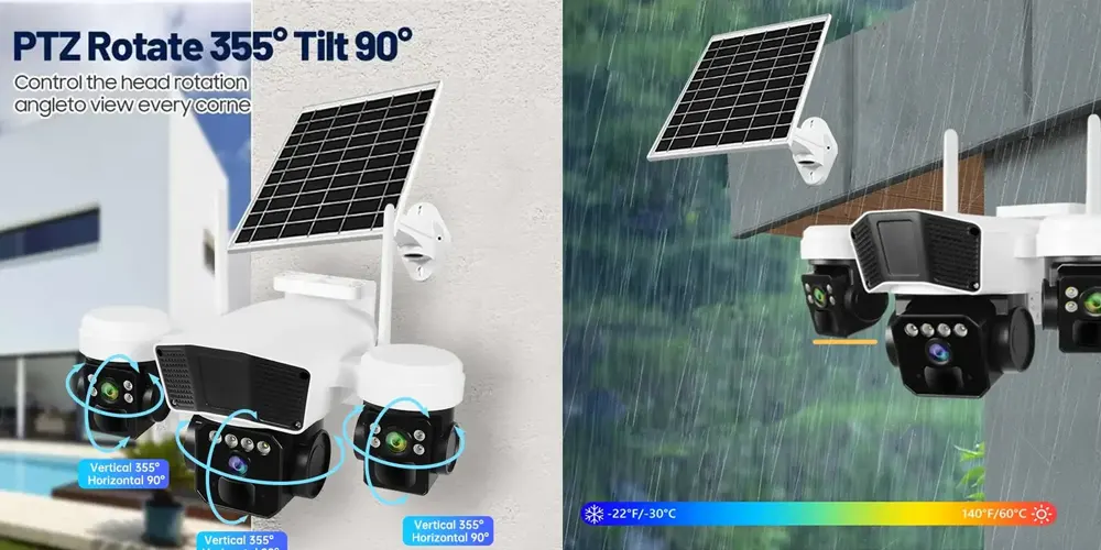 اگر به دنبال دوربینی با کیفیت بالا برای محیط بدون برق خود مانند باغ بیرون از شهر هستید یا قصد دارید دوربینی خریداری کنید که در زمان قطعی برق خاموش نشود، دوربین سه لنز خورشیدی Tl3 پیشنهاد فروشگاه وبرا به شما عزیزان است. این محصول با سه لنز امکان نظارت 360 درجه را بدون نیاز به برق و مودم حتی در شب نیز برای شما فراهم می‌کند. با خرید این دوربین می‌توانید تصاویر رنگی به صورت 24 ساعته از طریق نرم افزار o-kam دریافت کنید، صدای افراد را بشنوید و با آن‌ها صحبت کنید، از دیگر امکانات این محصول عبارتند از: